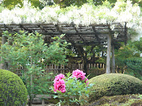 白藤と牡丹の競演。この庭園は紅葉の頃がたいそう美しそうだ。